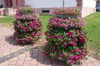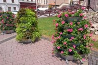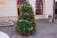 V OBRAZOCH: Centrum Bystrice skrášľujú kvetinové pyramídy