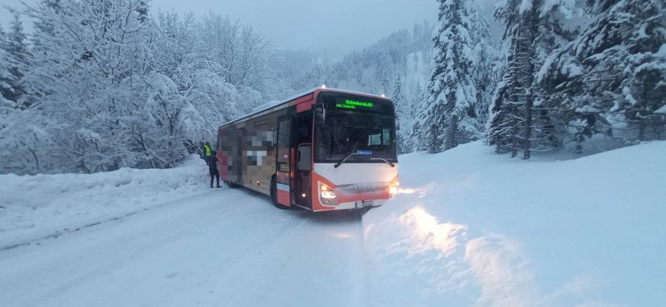 Galéria k článku POZOR na horských priechodoch! Donovaly zablokoval autobus, problémy sú na Šturci aj Čertovici, FOTO