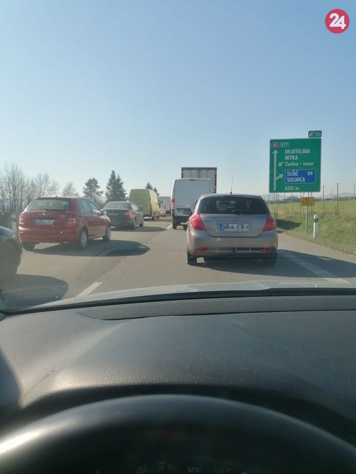 Kolóna na R1-tke medzi Banskou Bystricou a Zvolenom