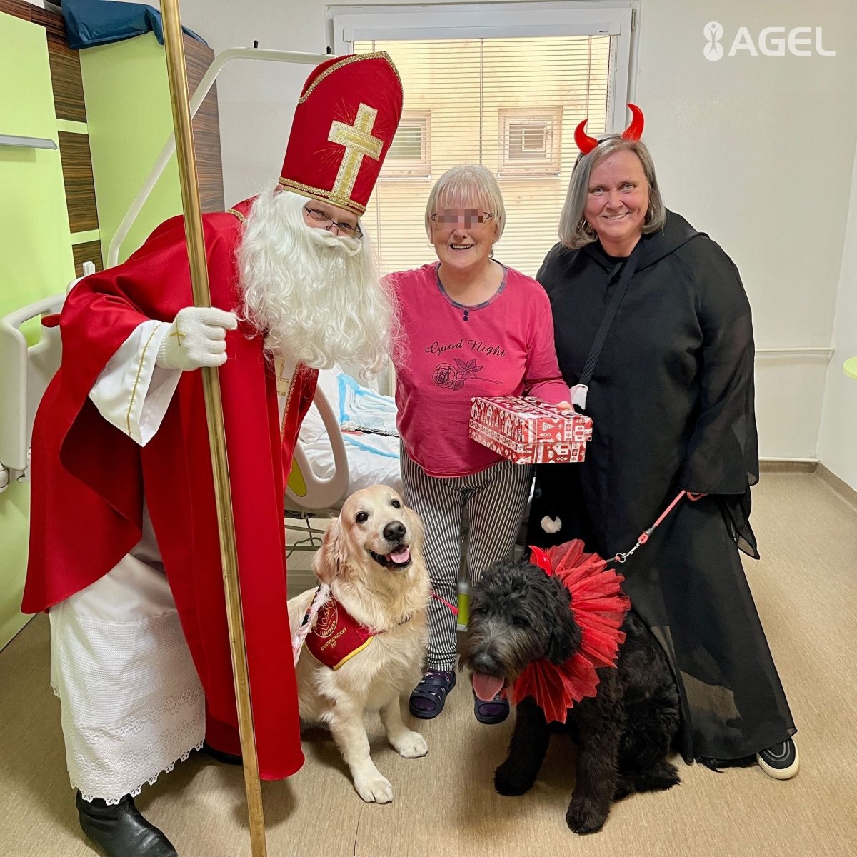 Galéria k článku Mikuláš potešil pacientov s NEVŠEDNÝMI pomocníkmi: ANJEL s ČERTOM mali 4 nohy, FOTO