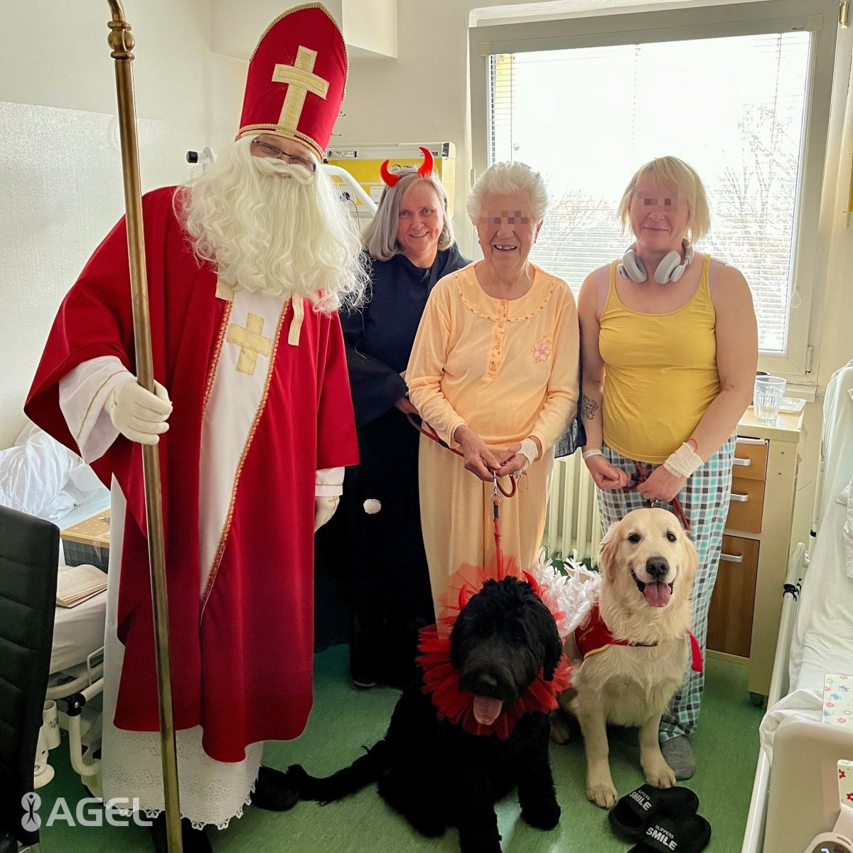 Galéria k článku Mikuláš potešil pacientov s NEVŠEDNÝMI pomocníkmi: ANJEL s ČERTOM mali 4 nohy, FOTO