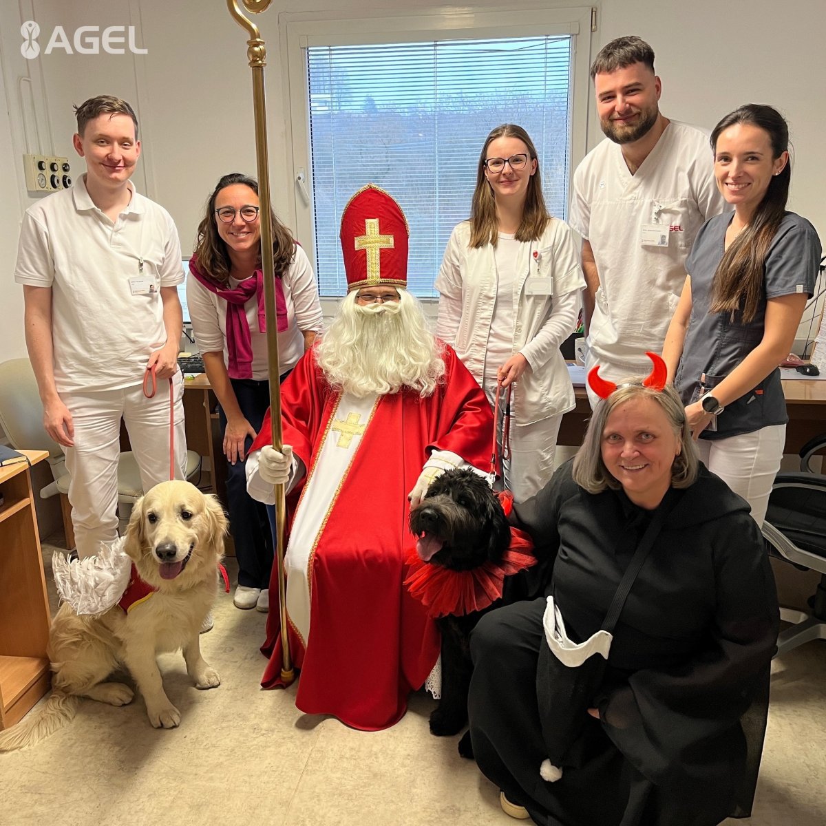 Galéria k článku Mikuláš potešil pacientov s NEVŠEDNÝMI pomocníkmi: ANJEL s ČERTOM mali 4 nohy, FOTO