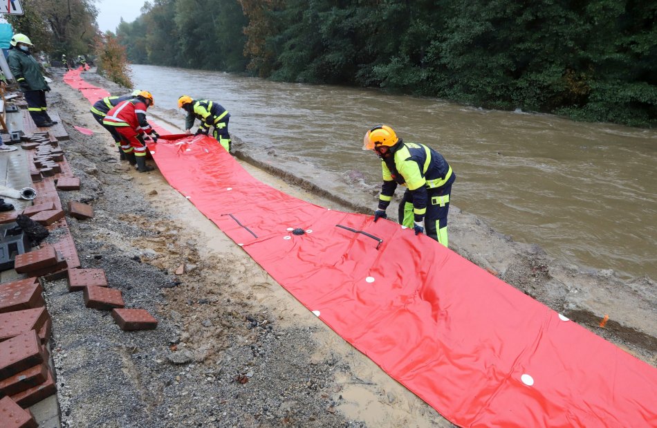 Galéria k článku Protipovodňové opatrenia v Bystrici: Pri Hrone zasahujú hasiči, VIDEO a FOTO