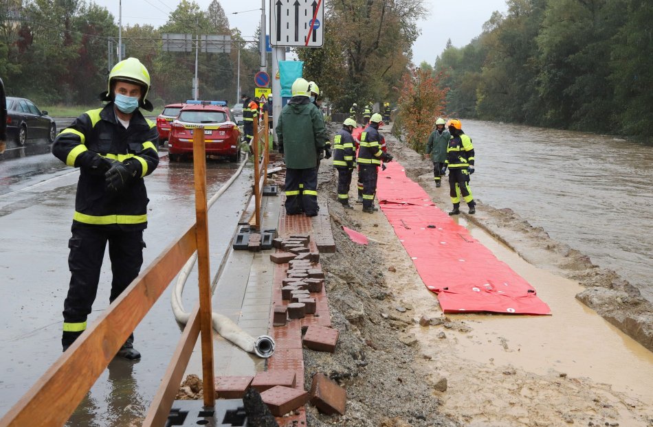Galéria k článku Protipovodňové opatrenia v Bystrici: Pri Hrone zasahujú hasiči, VIDEO a FOTO
