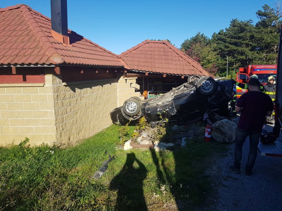 Galéria k článku HROZIVÁ nehoda v Bystrici: Auto skončilo po náraze na streche, na mieste sú zranení, FOTO