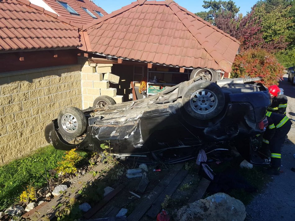 Galéria k článku HROZIVÁ nehoda v Bystrici: Auto skončilo po náraze na streche, na mieste sú zranení, FOTO