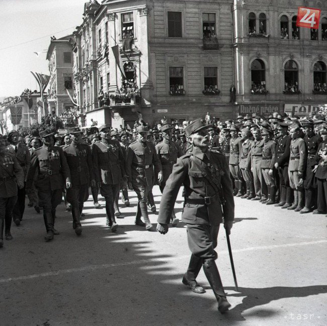 Galéria k článku Jedinečné zábery veľkých osláv v Bystrici: Takto vyzeralo 1. výročie SNP, FOTO