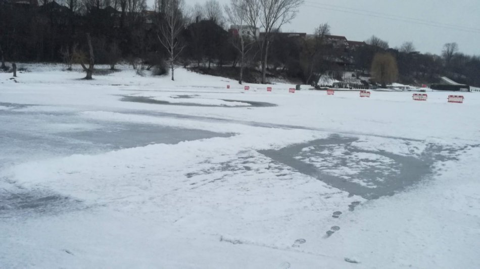 Galéria k článku FOTO z bystrického kúpaliska hovorí za všetko: Ľadovú plochu do odvolania UZATVORILI