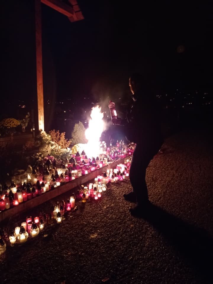 Galéria k článku Mestskí policajti sa blysli v úlohe hasičov: Poradili si s požiarom na cintoríne, FOTO