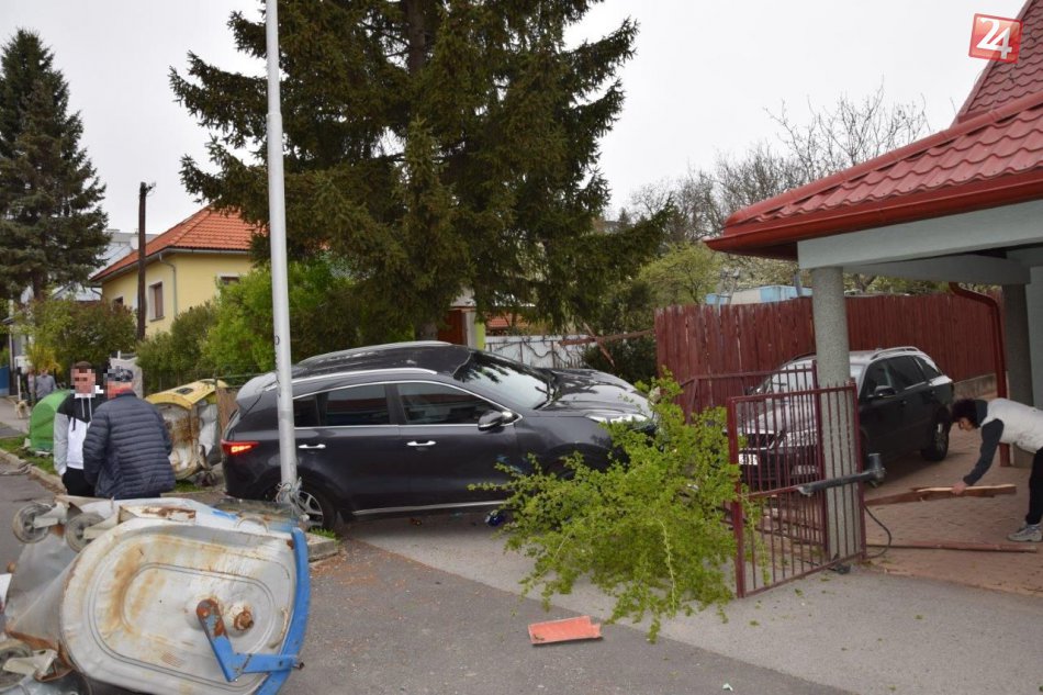 Galéria k článku FOTO: Bystričan (18) si vodičák dlho neužil. Poškodil kontajnery, stĺp, aj stojace auto