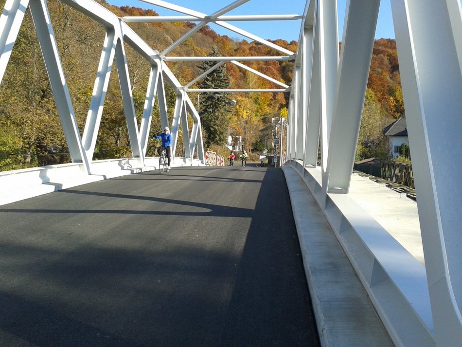 Galéria k článku Bystričania sa konečne dočkali: Po novom moste prešli prví cyklisti, FOTO