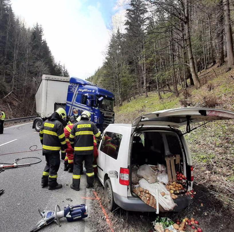 Galéria k článku Pod Donovalmi sa čelne zrazil nákladiak s autom: Jedna osoba neprežila, FOTO