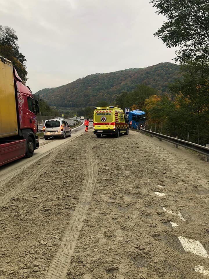 Galéria k článku Pri Zvolene sa prevrátil kamión s prívesom: Vodič nafúkal takmer 3 promile, FOTO