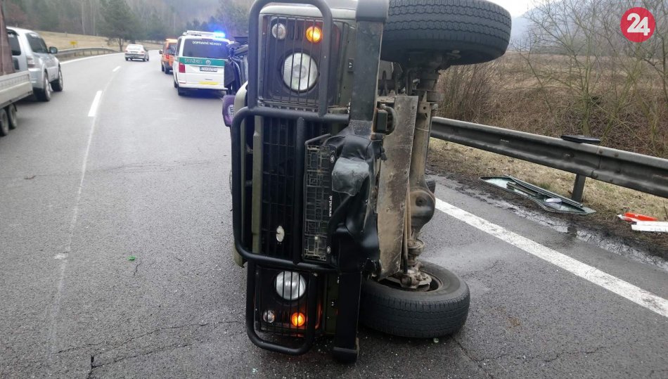 Galéria k článku Nehoda na zjazde z R1: Auto skončilo na boku, FOTO