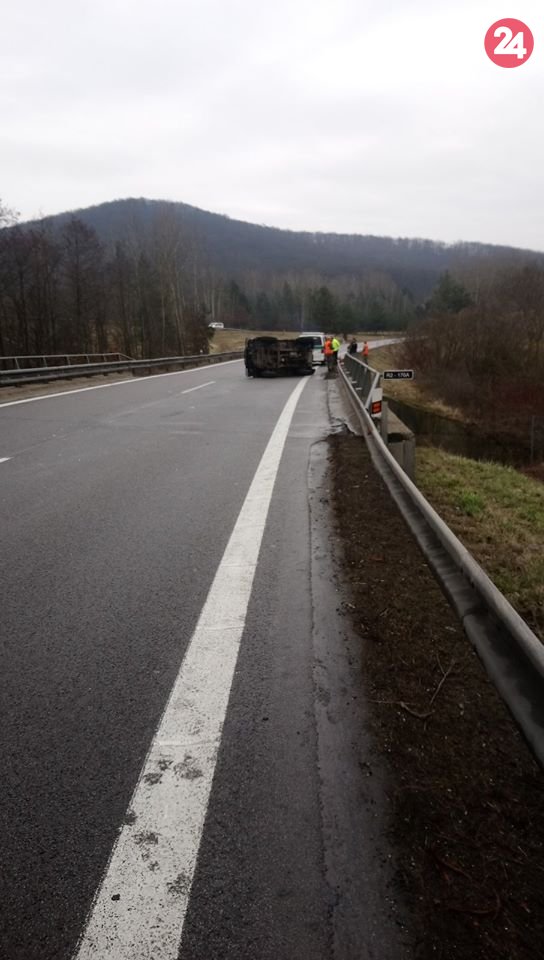 Galéria k článku Nehoda na zjazde z R1: Auto skončilo na boku, FOTO