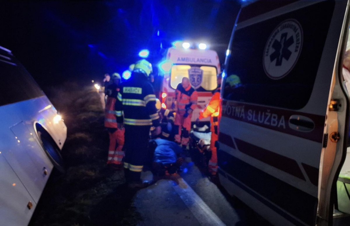 Galéria k článku PRVÉ zábery z miesta nehody: AUTOBUS je v priekope, na mieste sú zranení, VIDEO a FOTO