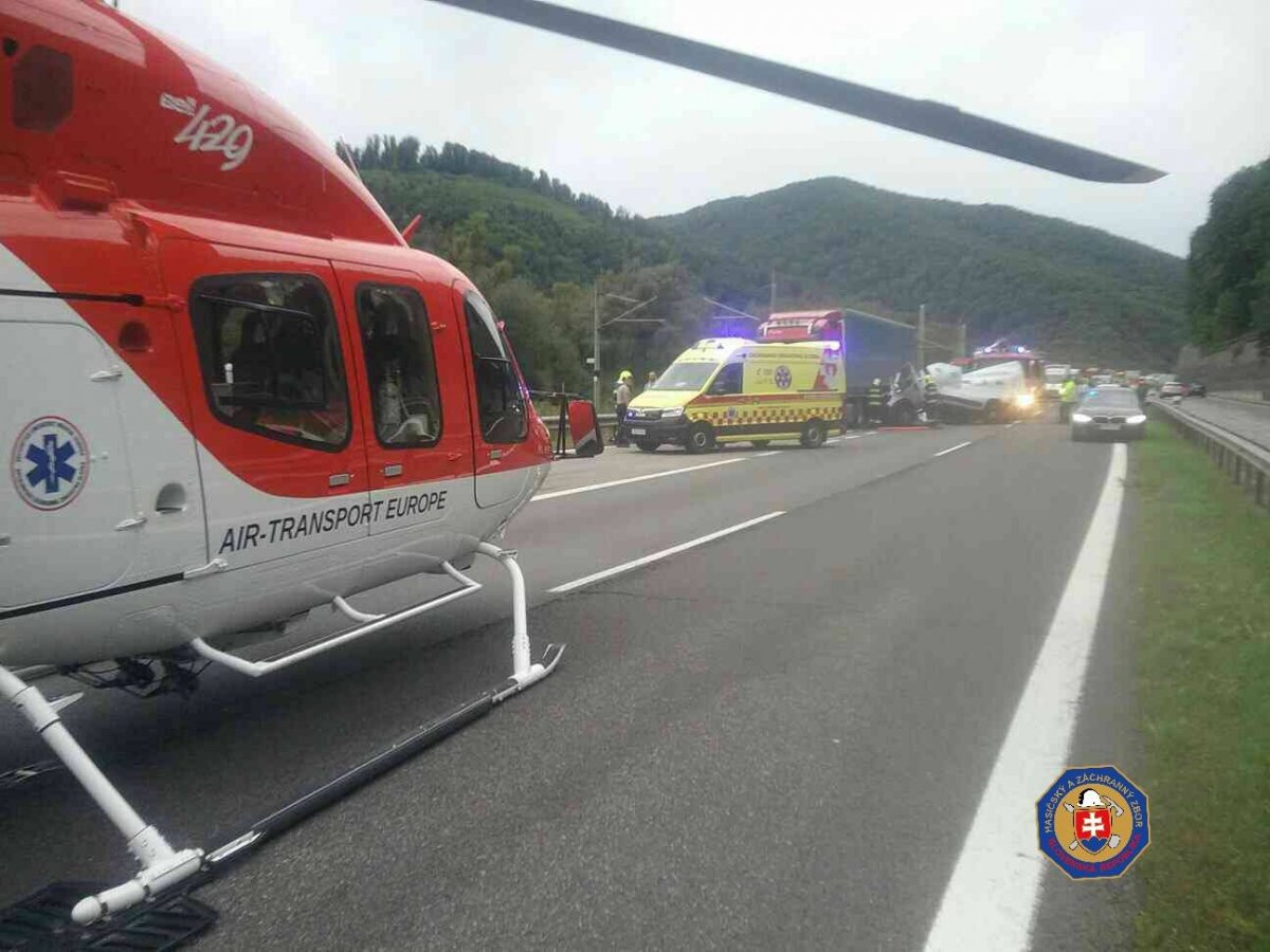 Galéria k článku Nehoda dodávky s kamiónom OCHROMILA dopravu: R1 je NEPREJAZDNÁ!