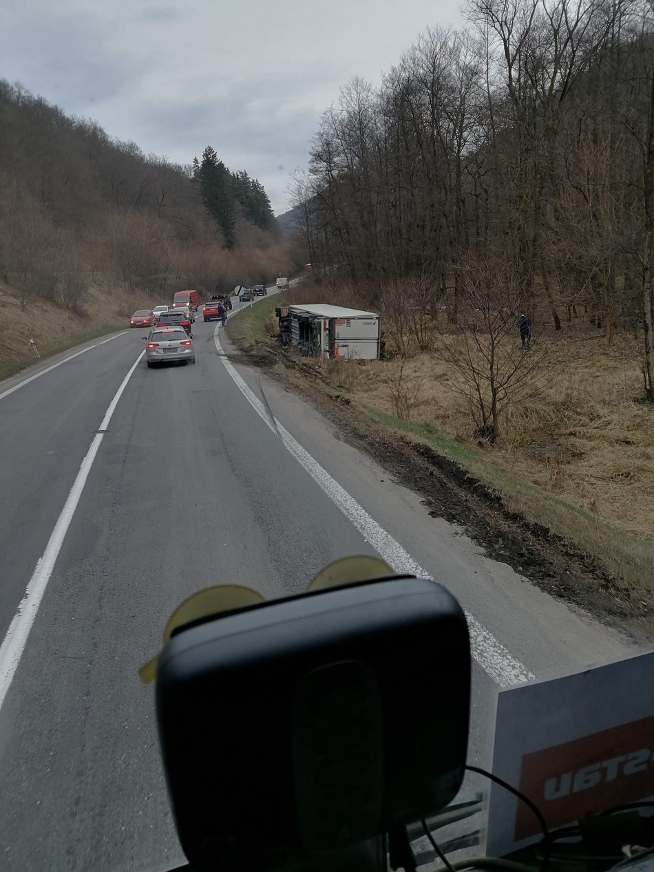 Galéria k článku Vo Zvolene havaroval kamión: Skončil prevrátený mimo cesty, FOTO