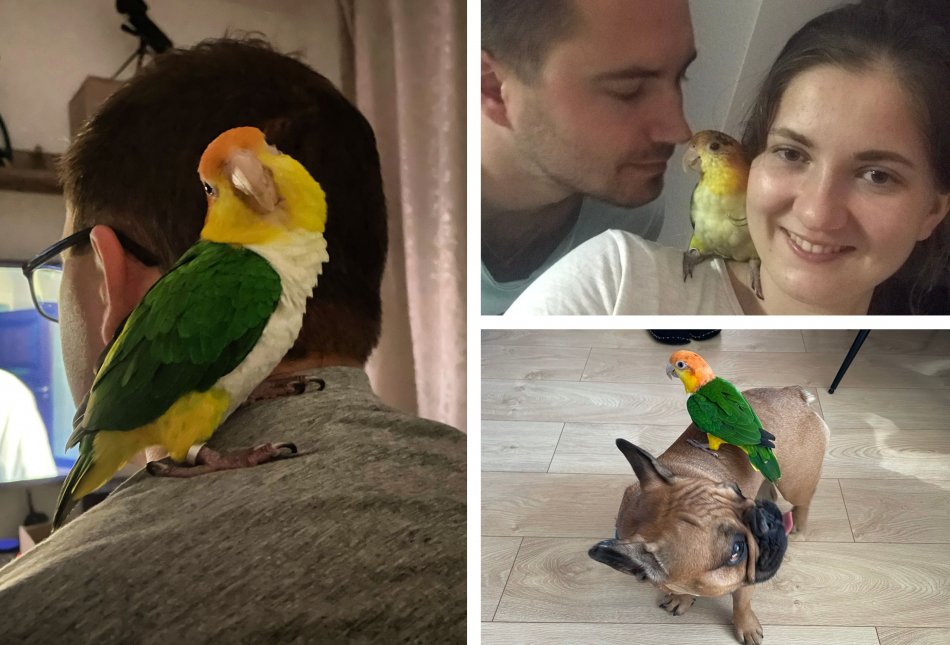 Galéria k článku Túli sa ako pes a mňauká ako mačka: Párik Bystričanov chová podareného papagája, VIDEO