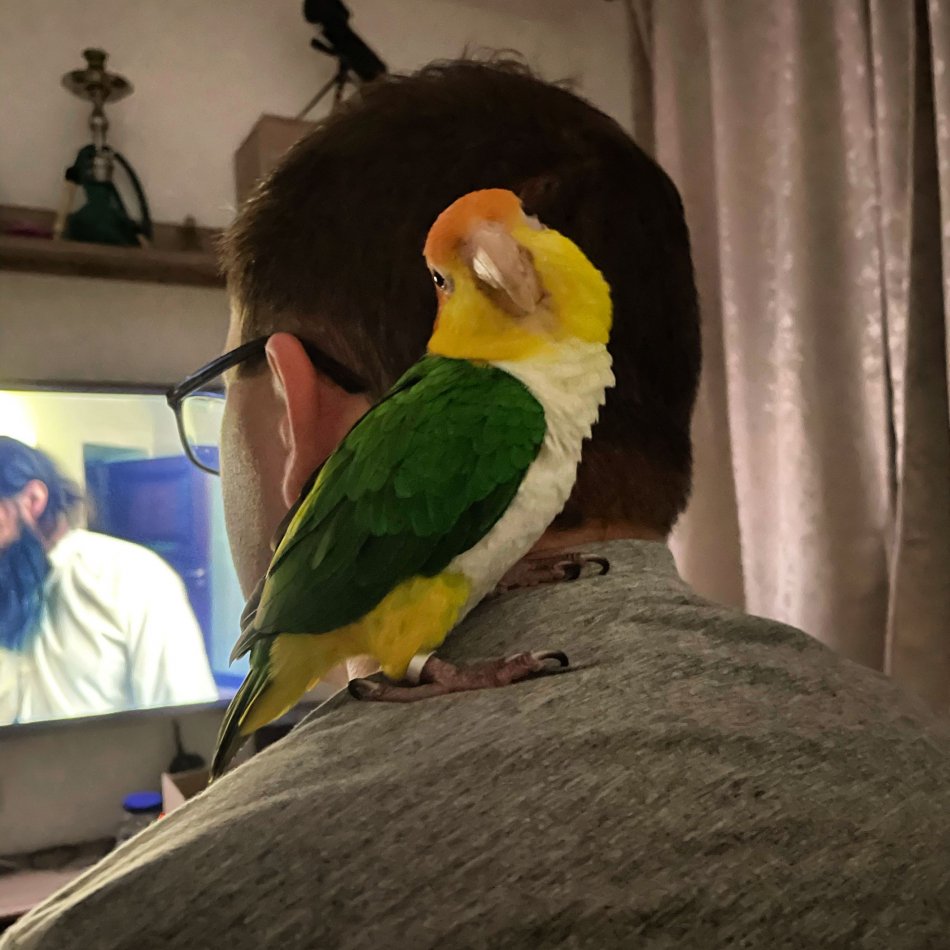Galéria k článku Túli sa ako pes a mňauká ako mačka: Párik Bystričanov chová podareného papagája, VIDEO