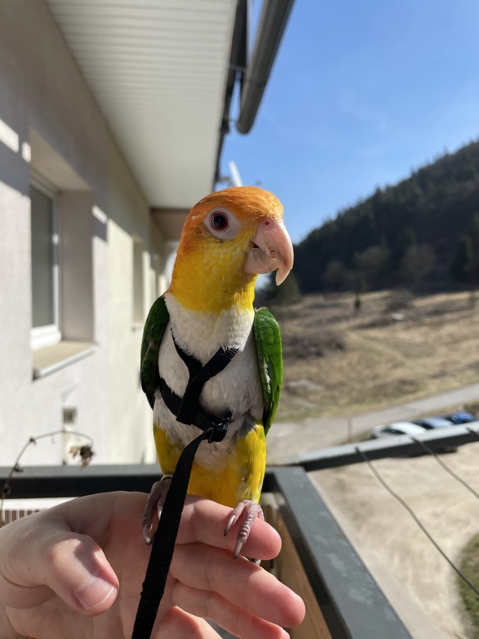 Galéria k článku Túli sa ako pes a mňauká ako mačka: Párik Bystričanov chová podareného papagája, VIDEO