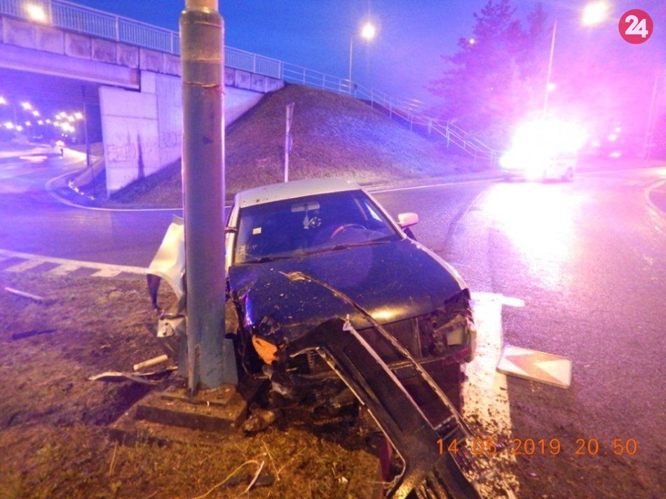 Galéria k článku Vodič vo Zvolene unikal policajtom. Po jazde v protismere skončil s autom v stĺpe a...