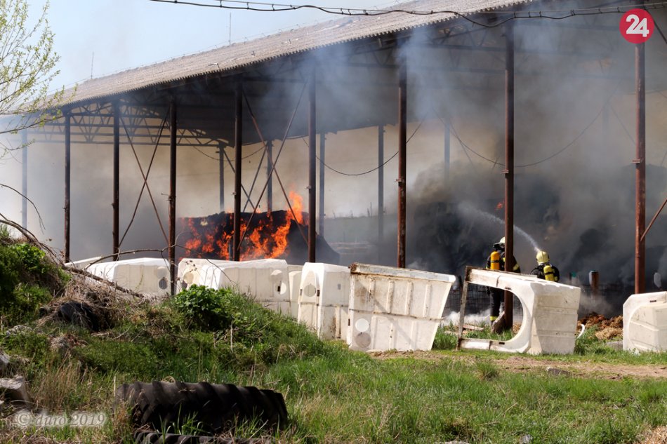 Galéria k článku Požiar na poľnohospodárskom družstve v Očovej. Zasahujú aj dobrovoľní hasiči, FOTO