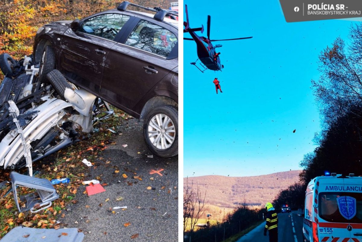 Galéria k článku DESIVÝ pohľad, auto skončilo na aute: Pri VÁŽNEJ nehode zasahoval vrtuľník, FOTO