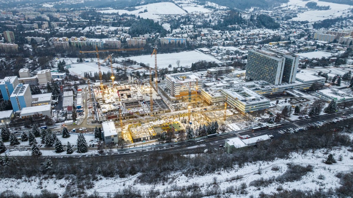 Galéria k článku ÚCHVATNÝ pohľad z výšky: Stavenisko NOVEJ nemocnice prikryl sneh, FOTO