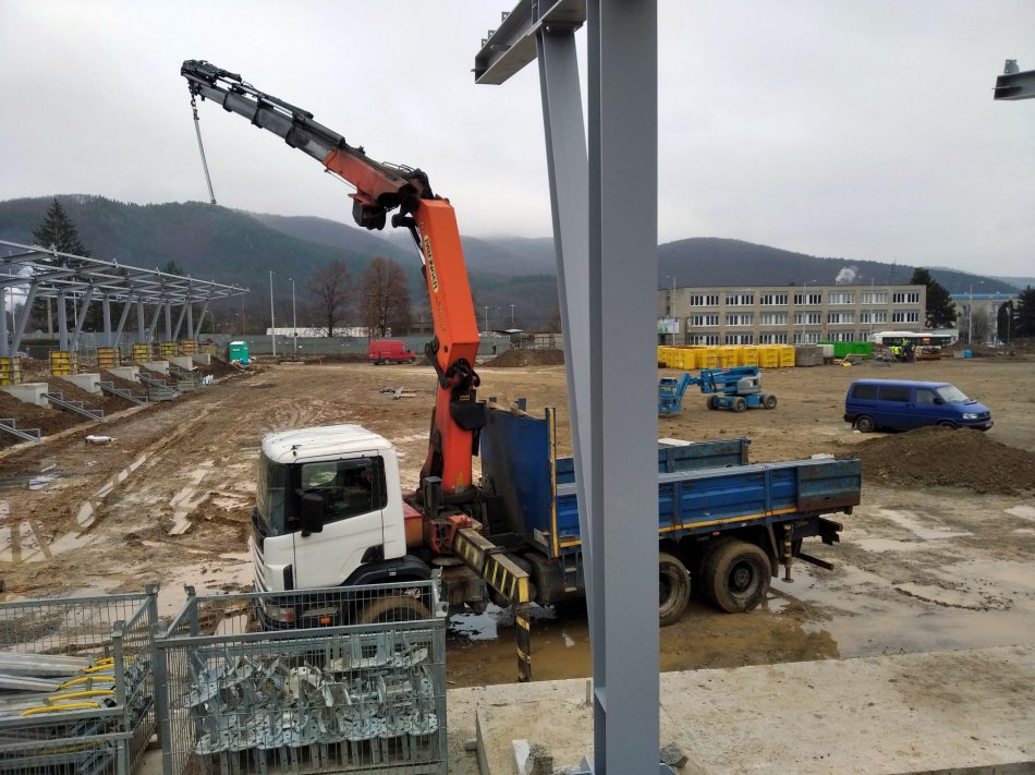 Galéria k článku Práce neutíchajú ani v zime: V Bystrici rastie nový futbalový štadión, FOTO