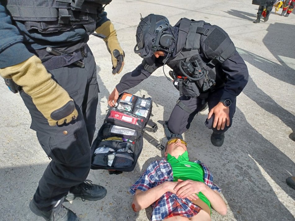 Galéria k článku Rukojemnícka DRÁMA v bystrickom trolejbuse: Pri CVIČENÍ zasahovali kukláči i vyjednávači, FOTO