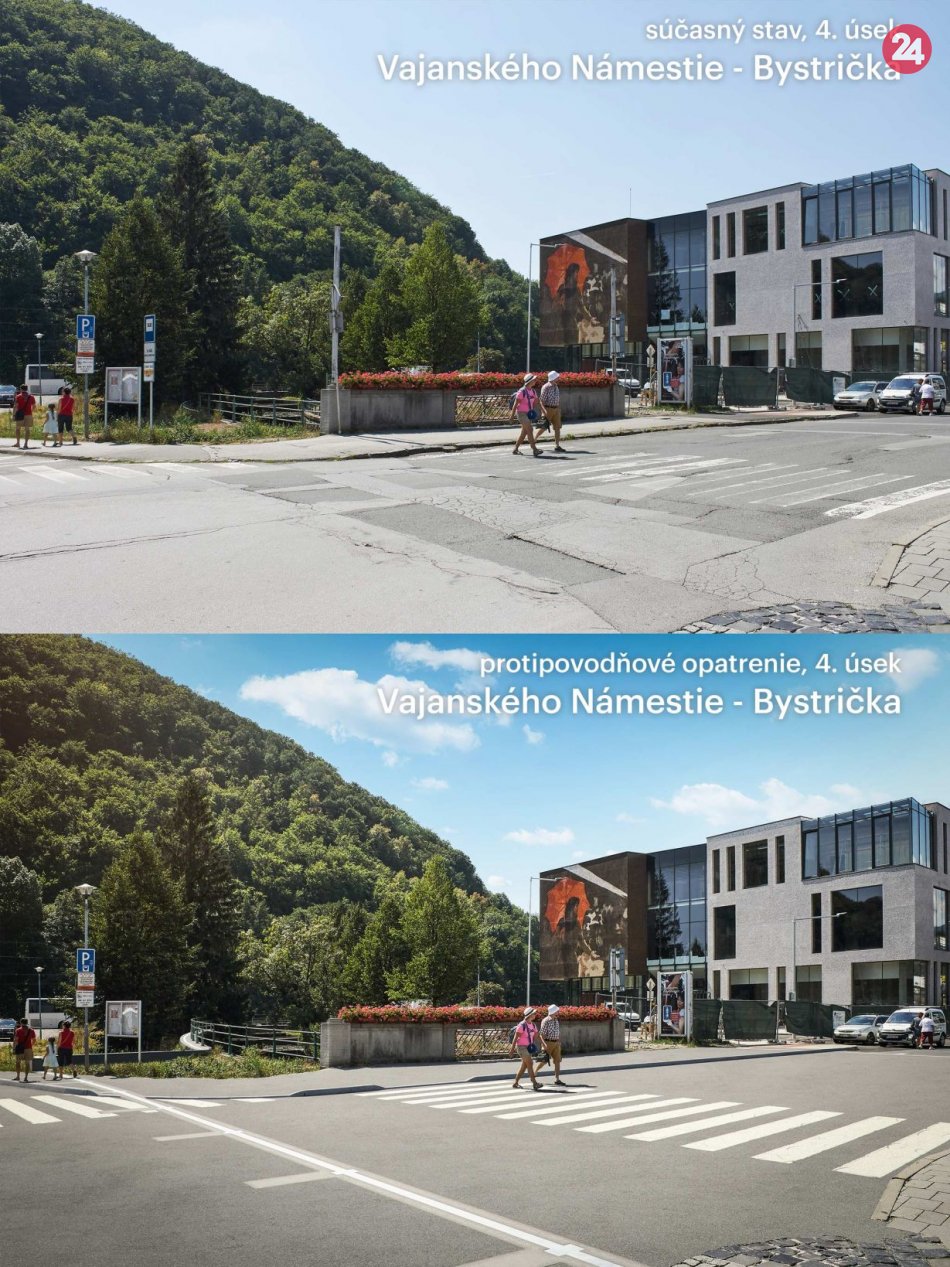 Galéria k článku Pokračujú práce na protipovodňovej ochrane mesta: Chodci musia počítať s obmedzeniami
