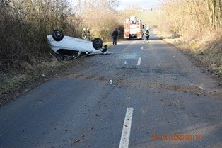 Galéria k článku Hrozivá nehoda na ceste: Vodička s autom skončila na streche, v aute sa viezlo aj dieťa!