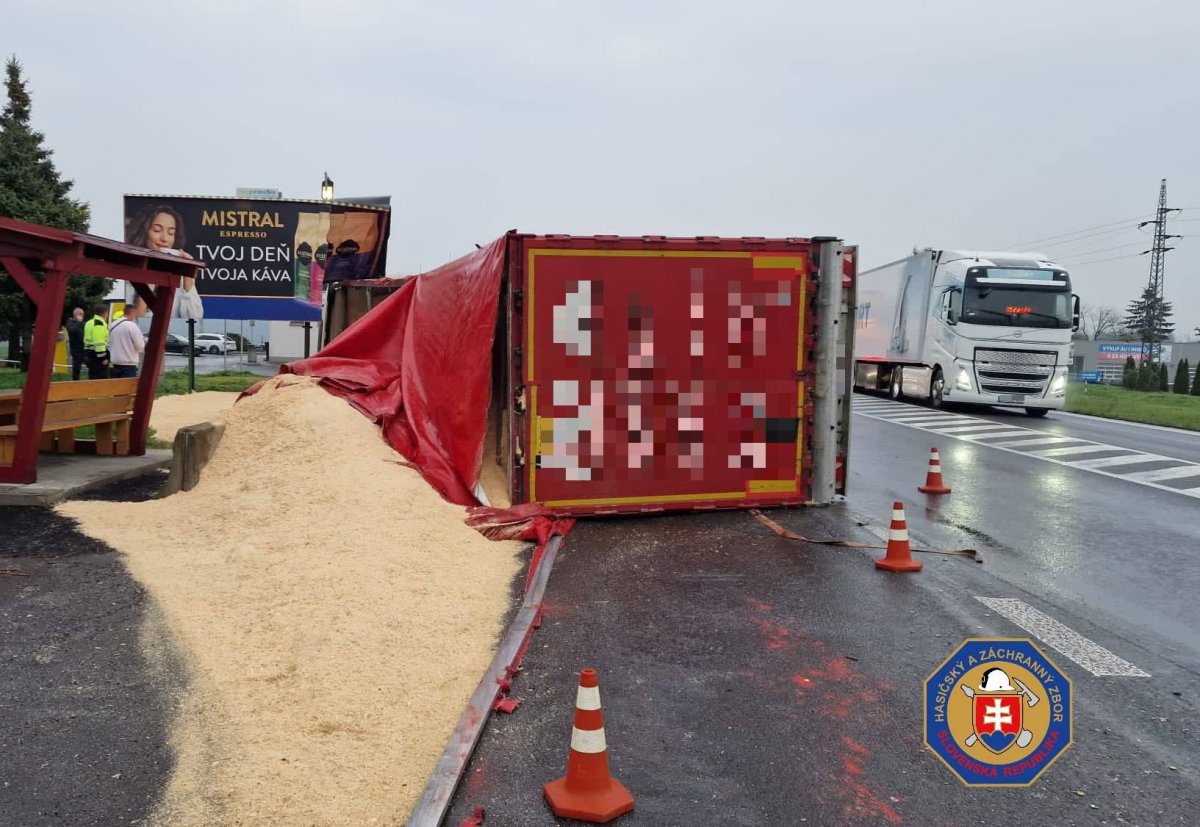 Galéria k článku Pri HROZIVEJ nehode sa PREVRÁTIL kamión: Vodiča VYSLOBODILI pomocou rebríkov, FOTO