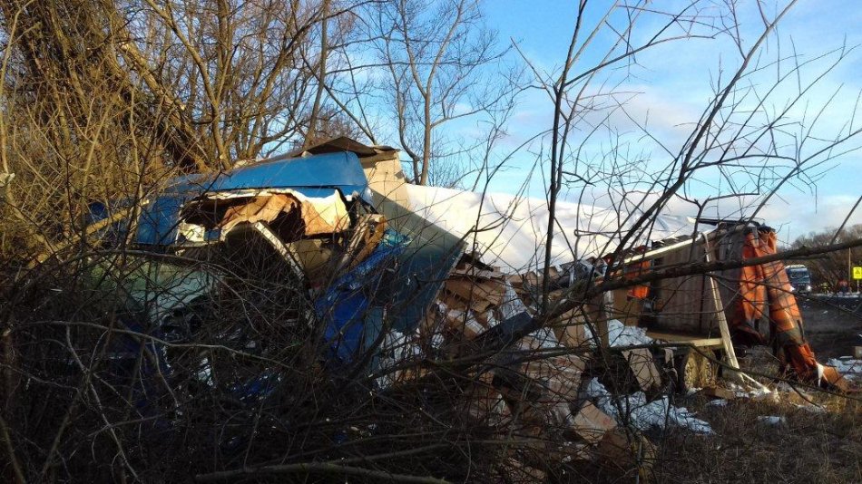 Galéria k článku Pri Zvolene sa zrazili kamióny a auto, cestu uzavreli: Na mieste sú zranení, FOTO