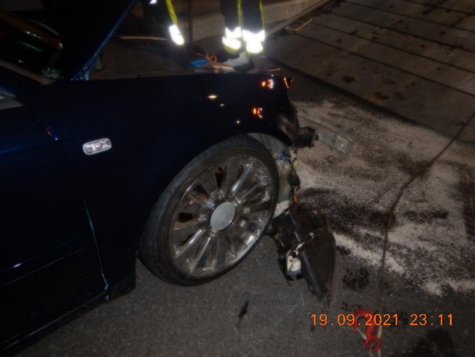 Galéria k článku Dôsledky nočnej nehody na obchvate Bystrice: Odnieslo si to auto aj cesta, FOTO