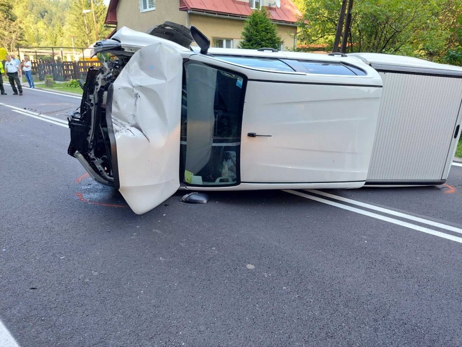 Galéria k článku Pre nehodu 2 áut pri Bystrici uzavreli cestu: Záchranári ratujú zranenú osobu, FOTO