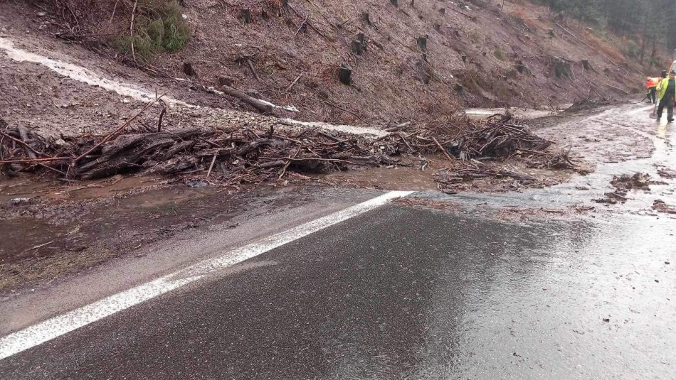 Galéria k článku Vodiči, dávajte si POZOR! Na cestu pri Donovaloch sa ZOSUNAL svah. FOTO