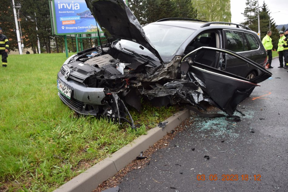Galéria k článku HROZIVÁ zrážka na bystrickom sídlisku: Oboch vodičov previezli do nemocnice, FOTO