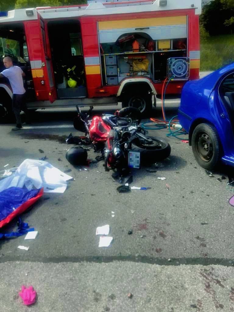 Galéria k článku DESIVÁ zrážka auta s motocyklom: Na mieste boli TRAJA zranení, zasahoval aj vrtuľník, FOTO