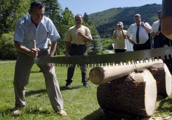 Galéria k článku Pílenie polena aj streľba. Na Donovaloch si zmerajú sily horári, prídu aj z Chorvátska