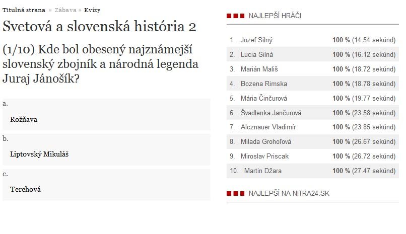 Galéria k článku VYHODNOTENIE: Toto sú najväčší borci v našich kvízoch!