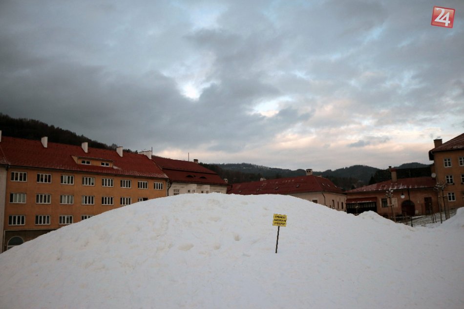 Galéria k článku Chalani prekabátili Perinbabu: Na kremnickom námestí vyrástla takáto kopa snehu!