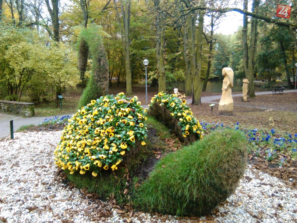 Galéria k článku FOTO: Lučenecký park láka aj na jeseň. Zelená labuť nádherne zakvitla