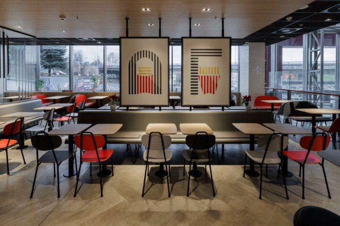 Interiér ponúka príjemnú atmosféru na každodenné rodinné a kamarátske stretnutia. Zákazníci môžu pohodlne využiť počas návštevy parkovacie priestory nákupného centra. Pre príjemný a rýchly zážitok je v prevádzke k dispozícii 10 samoobslužných kioskov, ktoré minimalizujú čakanie na objednávku. Vďaka tomuto systému môžu zákazníci preskočiť rad, objednať si vlastným tempom, platiť hotovosťou alebo kartou a prispôsobiť si objednávky.