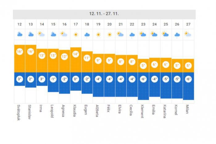 Najbližšie dni by sa denné teploty mali podľa portálu pohybovať v rozmedzí +10 až +16 °C a nočné od +2 do +8 °C.