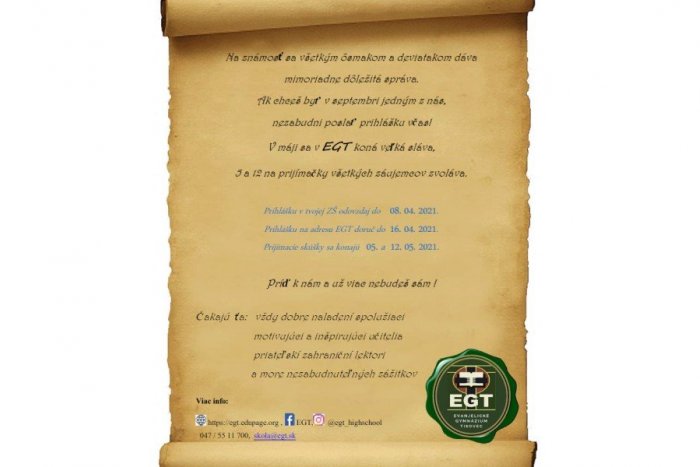 Bližšie informácie nájdete na: webovej stránke školy, facebookovej stránke