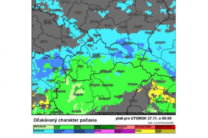 Dážď na veľkej časti Slovenska vystriedajú snehové vločky. Postupne bude klesať aj hranica sneženia.