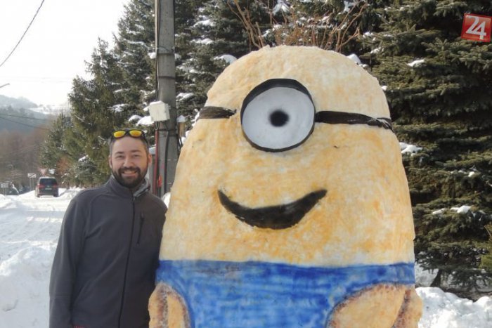 Žarnovický snehuliak sa stáva hitom: Obrieho mimoňa farbili kari korením, FOTO