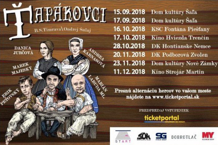 Ťapákovci patria k vrcholným dielam slovenskej dramatickej tvorby, v ktorom nám štipľavým a zatuchnutým humorom Timrava rozpráva o živote v jednej dedinskej izbe. Najnovšia verzia známeho námetu práve putuje po Slovensku v obsadení s hviezdnymi menami ako Marek Majeský, Majo Labuda, Danica Jurčová či Andrea Karnasová.